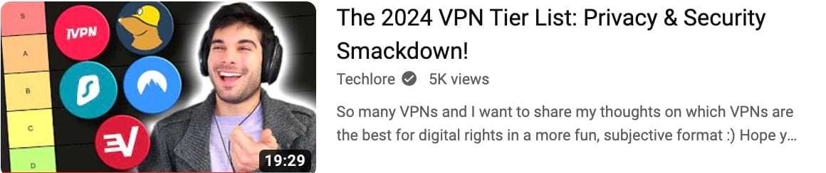 Next up is a super-informative review of the current VPN providers. Mullvad and iVPN top the list. An additional benefit of Mullvad is that it can integrate seamlessly with Tailscale, my preferred overlay network and accounts are anonymous with payment using Monero or Bitcoin.