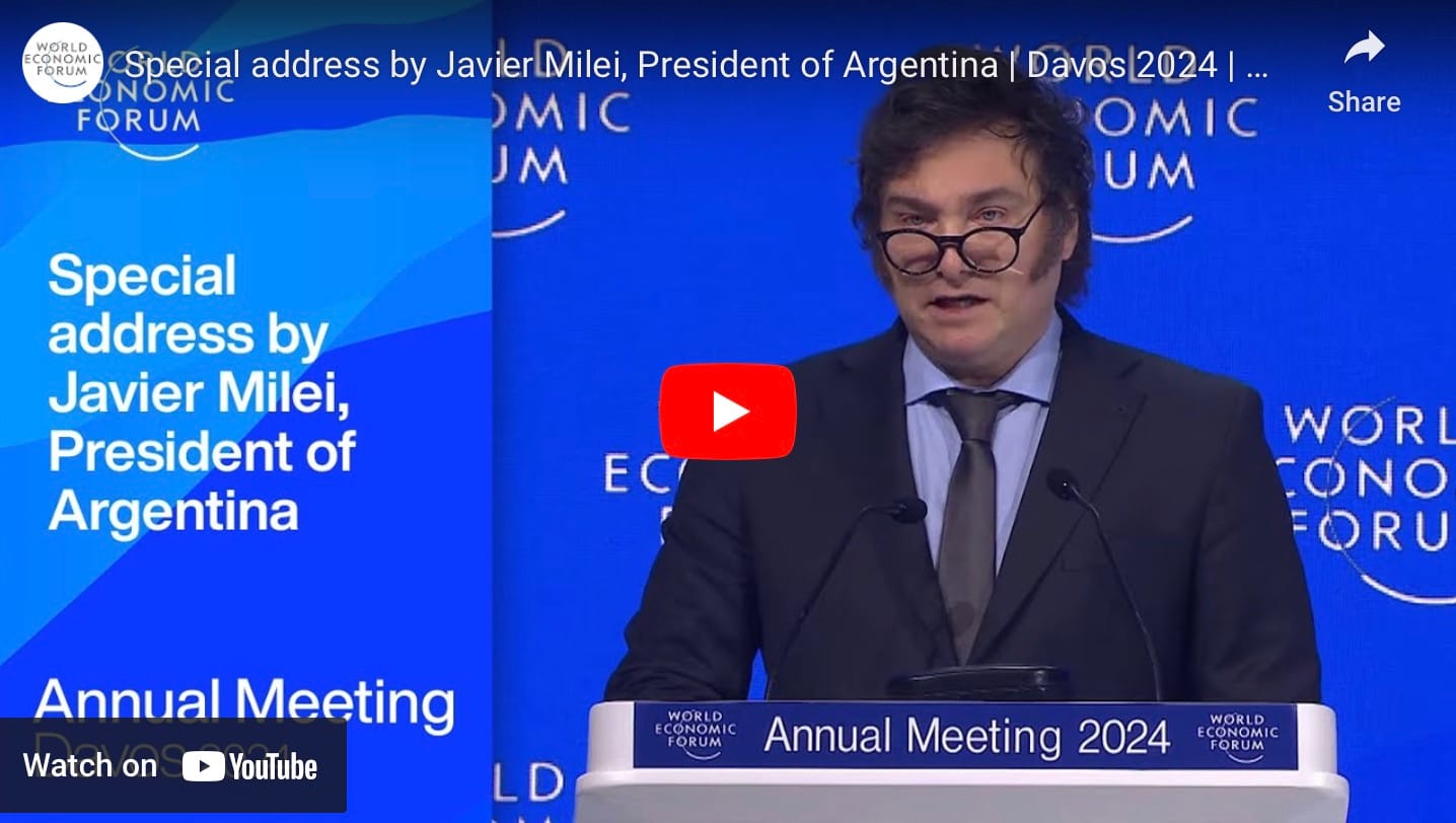 I would never have expected to be featuring an address to the WEF up front in my newsletters - even less in any sort of positive context - but this translation from Spanish of President Javier Milei's recent address is a Must Watch
