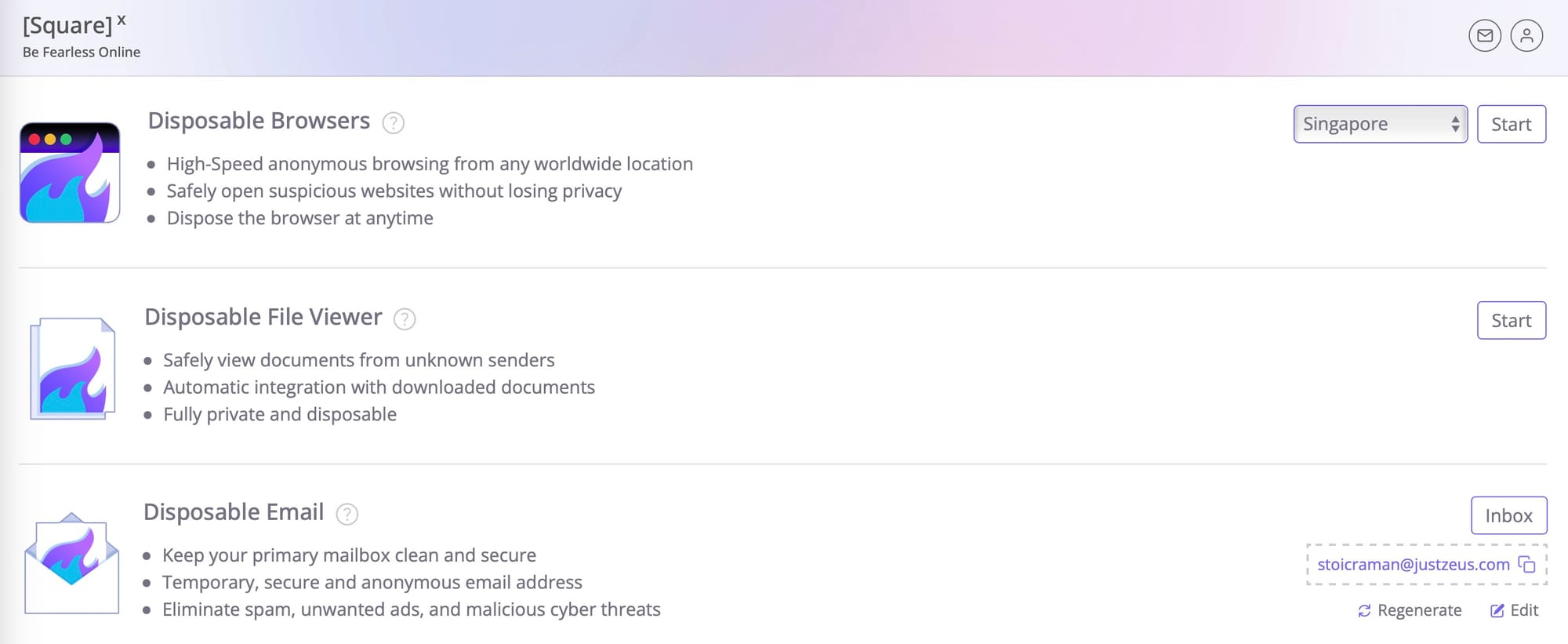 First up is SquareX. This is an amazing tool. Unlike existing products, SquareX allows you to open any suspicious file or website (including those with real malware) on remote servers with absolutely zero chance of getting hacked. This is done by giving you a completely sandboxed environment that allows you to browse using their cloud servers and also to open and view material on those servers. All of this happens in disposable windows, all trace of which disappears when you close them.