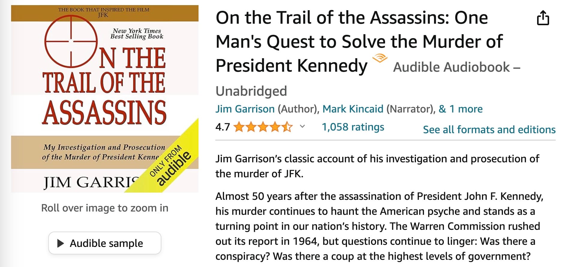 I have been reading a great book over the last week and it will blow your mind. Jim Garrison was the District Attorney of New Orleans and he got embroiled in the JFK assassination investigation due to the strange association of Lee Harvey Oswald (and a few other undesirable characters) with New Orleans. It is a truly fascinating story and replete with references to definitive source material - including the Warren Commission Report.