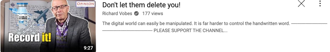 Richard reminds you of the importance of documenting what is going on around you as we live through these times. Best is in a proper physical journal or diary - whatever is online can be deleted and updated without your knowledge or consent.