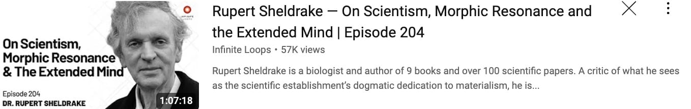 In this episode Rupert Sheldrake (Merlin's father), biologist and author, debunks the standard view that the mind is nothing but brain activity and argues that our mind is extended in every act of visual perception.