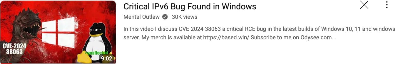 Hot on the heels of the Crowdstrike incident and less than a month ahead of CyberPolygon, yet another critical bug emerges in Windoze. This is a nice, short explainer by Mental Outlaw - you can read the CVE here.