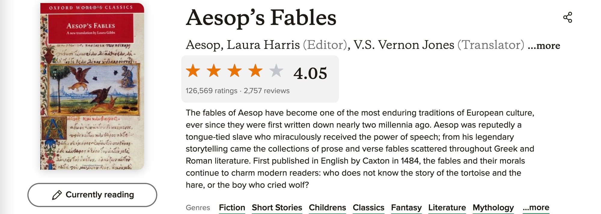 My copy contains 284 Fables - click below for the table of contents and foreword. How many of them are you familiar with?