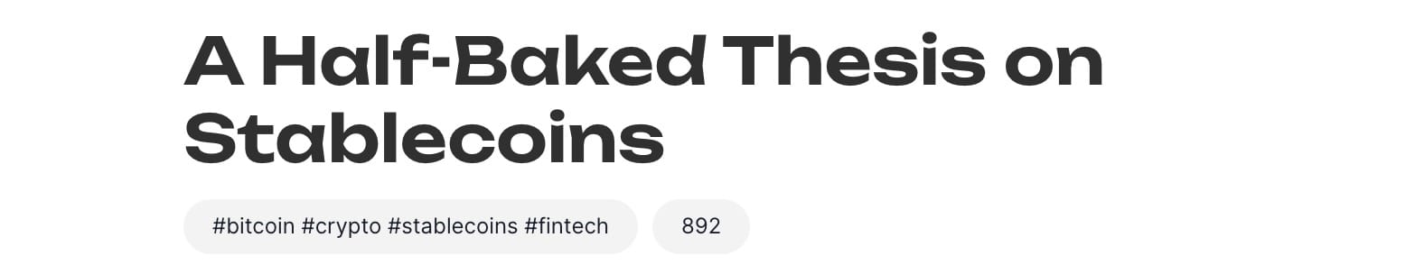 My focus for this week is Stablecoins. This might sound boring but the entire financial system is about to be transformed and this is technology that you want to understand. What are you doing?