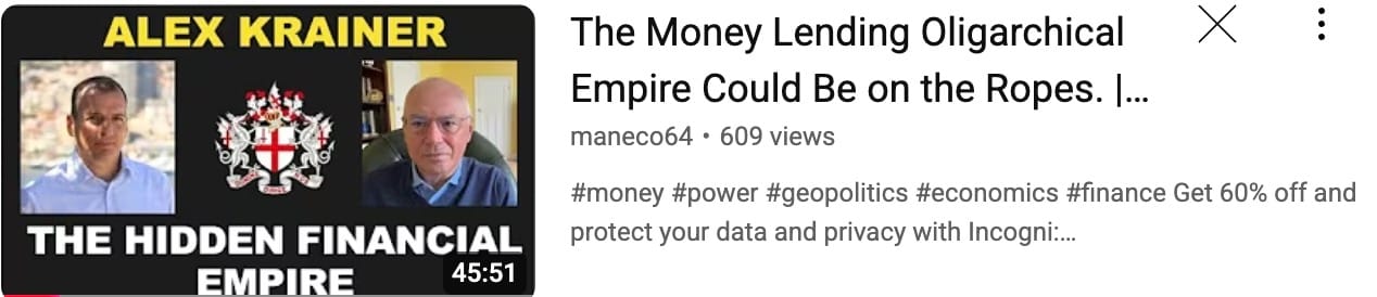 Alex does make an important point that banking is not inherently evil - rather it has been captured by the Empire and made so by the monopoly it obtained by claiming the unique right to create money. This is why money needs to be separate from the state and its creation needs to be out of their control.