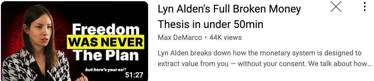 For those who prefer or need the bigger picture, this is an excellent interview with Lyn. She covers all the key points in her superb and recommended book - Broken Money.