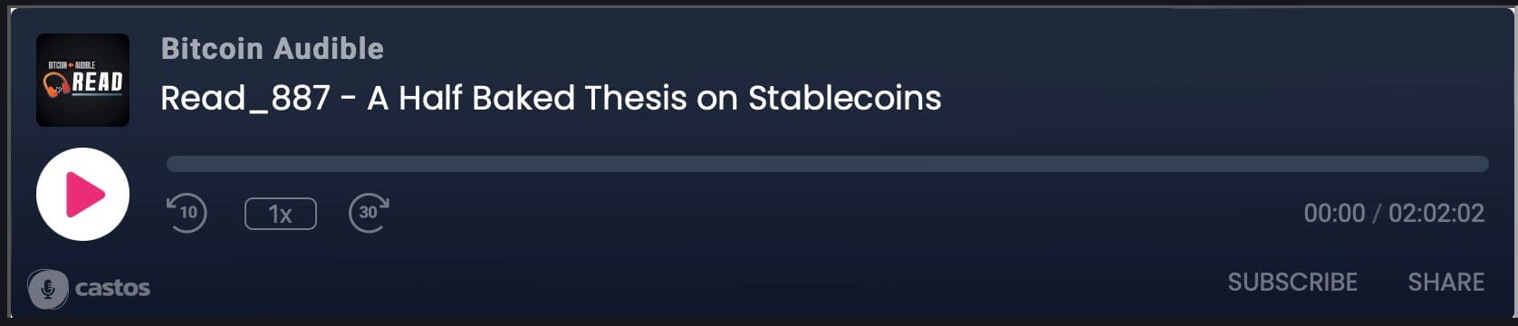 What if the stablecoin boom isn't a threat to Bitcoin, but a stepping stone? Let's dive into Allen Farrington’s "A Half Baked Thesis on Stablecoins". At first sight they might seem like a betrayal of Bitcoin principles but they may very well be the Trojan horse for Bitcoin-native infrastructure. Consider what happens when fiat settles over Lightning and how eCash and Taproot Assets could reshape everything we thought we knew about digital money - listen below to understand how this may well play out.