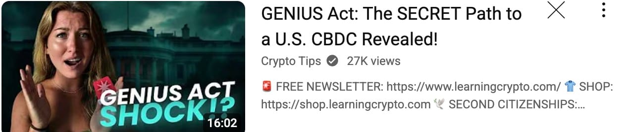 This is an excellent and very clear explainer by Heidi about what is happening and how the public is being misled and distracted while the walls are being built. Like Allen, Heidi correctly sees the significance of stablecoins and she comes at this from a different angle that you ought also to keep in mind.