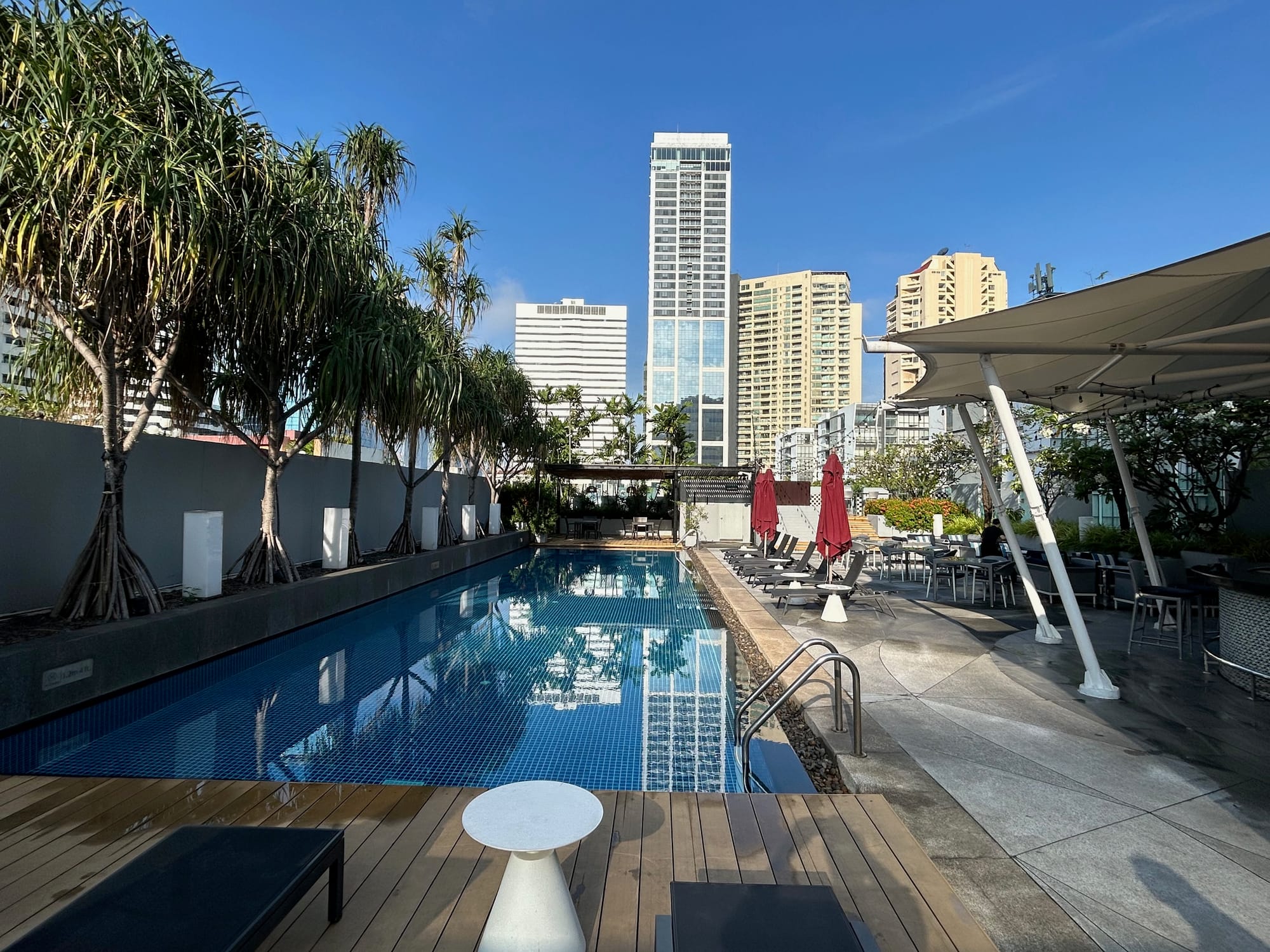 V and I have got back into our daily swimming here. The outdoor pool on the roof is a rather pleasant 28 degrees.
