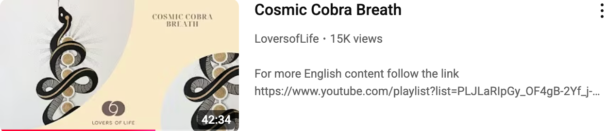 I realise that those books can shake you up quite a bit - at least they ought to! As the saying goes: "it's only money". You will likely recall that I am a fan of yoga, having been introduced to it when I moved to Hong Kong. There are many forms of yoga - one of the more interesting ones is Pranayama in general and Cosmic Cobra in particular.