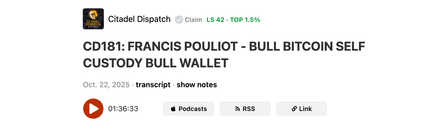 Francis is the Founder of Bull Bitcoin, a Canada first globally expanding bitcoin brokerage service. They recently launched their own self custody mobile wallet on iOS and Android: Bull Wallet.