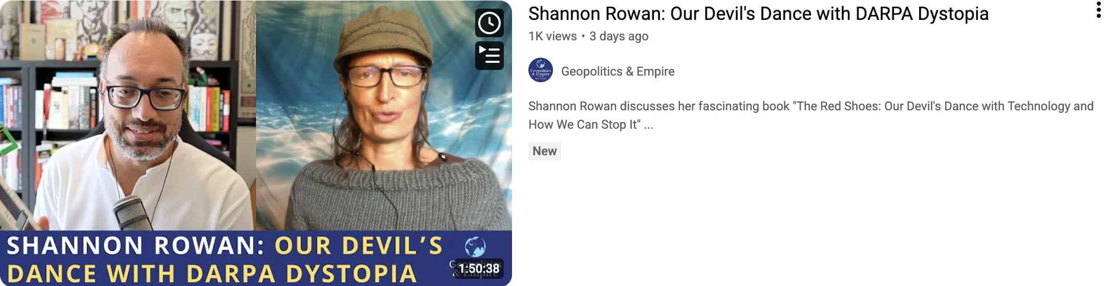 Shannon Rowan discusses her fascinating book “The Red Shoes: Our Devil’s Dance with Technology and How We Can Stop It” on whether digital technologies have crossed the Rubicon from being mere tools to becoming our masters and whether they may even inherently be evil.