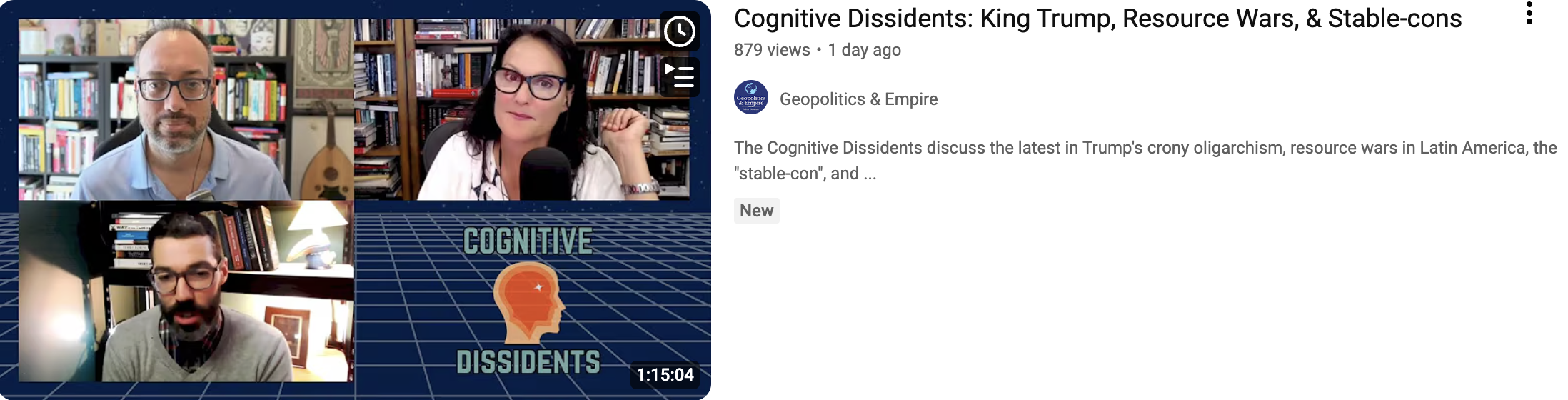 If you are looking for a good monthly review of the madness going on in the world - from a variety of well-informed perspectives this is it. The Cognitive Dissidents discuss the latest in Trump’s crony oligarchism, resource wars in Latin America, the “stable-coin-con” and quite a bit more! There is no shortage of distractions currently.