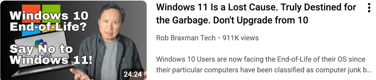 If you are a Windoze user you are at a critical moment and likely an important decision is due. Evil Microsoft is abandoning all Windoze 10 users and forcing them to upgrade to Windoze 11. In many cases this will require that you buy a new computer! You really need to open your eyes and look at what is going on.
