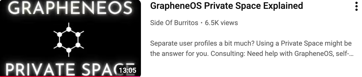 You will recall that I am very much a fan of GrapheneOS to give you a more secure and private phone, replacing the stock Android operating system. I was aware of Private Spaces but recently it has become even more interesting, being available in all of the additional profiles and not just the owner profile.