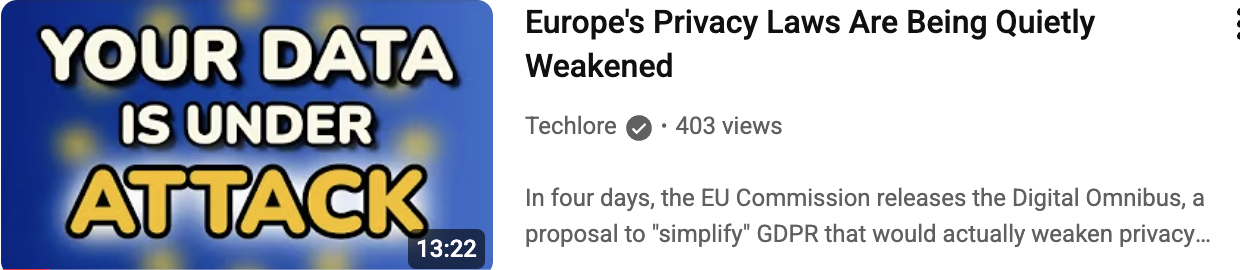 Of course, the EU is now quietly undoing the protections that you had with GDPR. They are doing their best to push through changes that weaken your protections in ways that all happen to favour big tech and AI companies in particular. You certainly did not vote for this, nor will you be consulted or asked. It is up to you to take action and demand that they stop - as Henry explains.