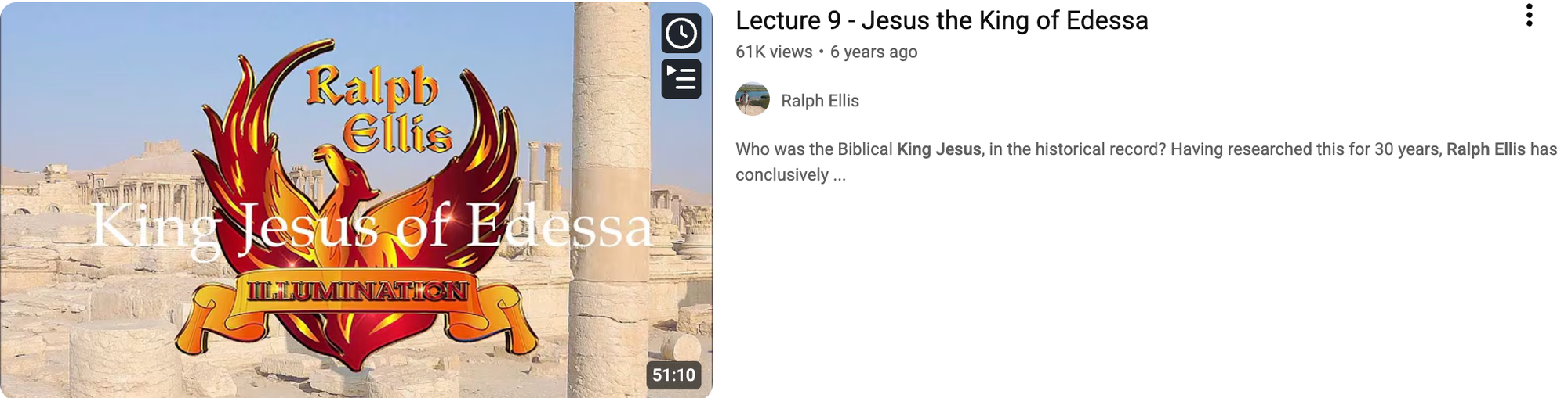 Then move on to Ralph's lecture on Jesus, King of Edessa. He goes further than Joe's analysis in several interesting directions. He will likely startle you with who Paul really was, considering that Paul wrote at least 13 of the 27 books in the New Testament - and he may well have been the real writer of the Gospel of Luke and Acts of the Apostles as well. All the pieces in the puzzle fit together, once you see this.