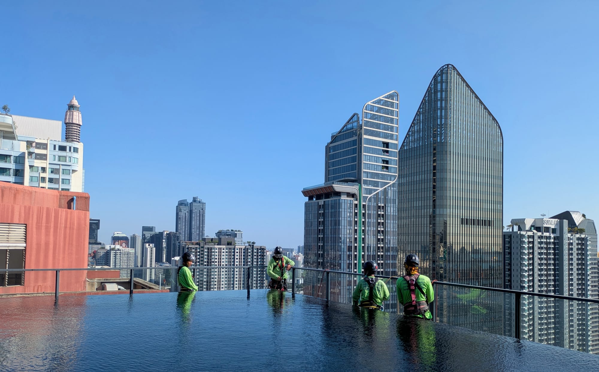 Sun rises early here, currently around 0630 and it's nice to sit on our east facing terrace with a cup of tea and watch it rise over the city. By 0745 it it too hot to sit outside there any more so that's a good time to go swimming in the pool up on the roof - this is one of the many great things you can do here. Yes, it does have an infinity edge and a nice view over the city!