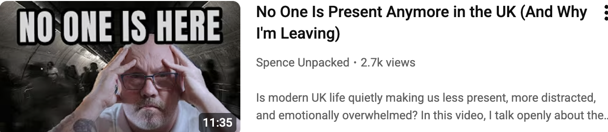 This is a rather interesting and thoughtful monologue from Spence. Listen and you will understand why he has come to the conclusion that many also do - and he is taking action as he can. Over recent years I meet so many people who think likewise - how about you - can you articulate it yet?