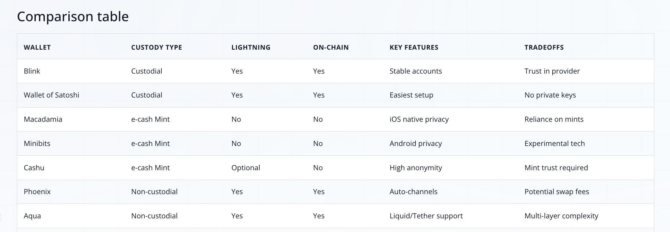 Blink is positioned as a speed-first, user-friendly wallet for quick Lightning payments. This is the main wallet used in El Salvador so it is very well tested and it works well. It focuses on fast send/receive flows, in-app balance visibility, and minimal friction for micropayments and purchases. For daily use Blink aims to remove setup complexity - good for people who want to pay with Lightning without dealing with channel management. Blink has many other useful features including integrated contacts - well worth checking out.