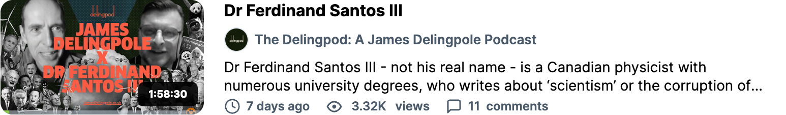 During the week I listened to this fascinating discussion between James and a Canadian physicist who is obviously well awake to what is going on in the world these days. He writes about ‘scientism’ or the corruption of science by philosophy and materialism. Here he explains to James how the moon landings were obviously fake because they were impossible to achieve.
