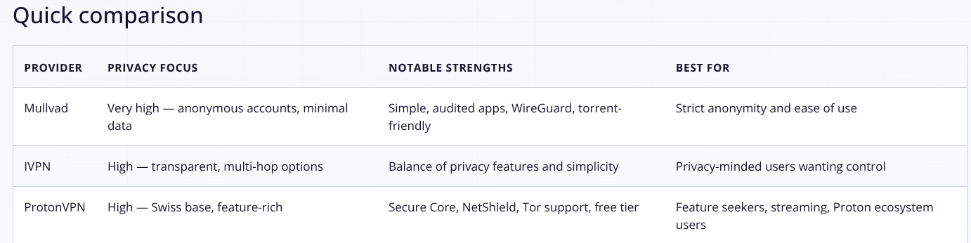 Mullvad is the simplest privacy-first option: you create an anonymous numeric account, pay anonymously, and the service logs almost nothing. Its apps (OpenVPN and WireGuard) are straightforward, torrent-friendly, and regularly audited. If anonymity and a minimal footprint matter most, Mullvad is hard to beat. The Mullvad Browser is also interesting - maybe not as your main browser, but certainly as your alternative - it is based on Firefox.