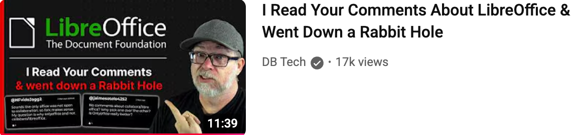 Despite the claim to be unrelated I think the recent turmoil in and around open source Office suites is likely linked and orchestrated. It is quite likely being funded and pushed indirectly by Micro$lop and maybe Google too - the same way that they secretly funded all sorts of lobby groups to push through Age Verification laws in multiple US states. This summary from DB Tech is the clearest that I have found - and he links to all source materials, including those from the EU on EuroOffice.