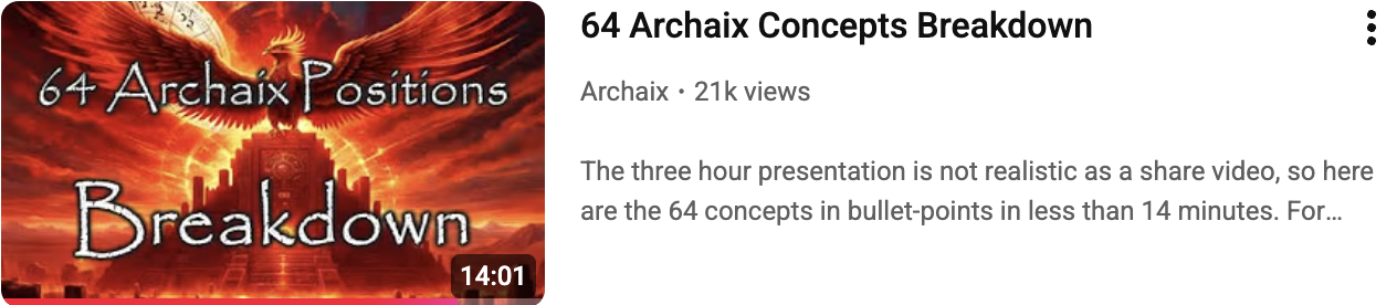 The "64 Tenets of Archaix" form a comprehensive list of core principles, historical claims, and philosophical assertions outlined in a single thread from March 9, 2025. These "positions" form the foundational worldview of Archaix, covering topics like ancient history, resets, simulations, and reality constructs. Here's the full list - Jason will talk you through them all: