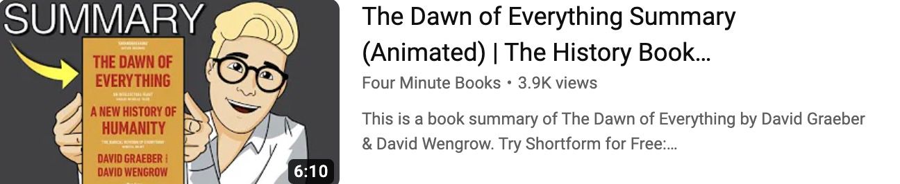 Recall that we recently reviewed Sapiens by Harari. I was pushed to do this following an interesting discussion with a subscriber and indeed the book is both interesting and well-written - even though you can see the seeds of his now odious agenda being planted, it is good to take in such things in s spirit of ethical skepticism. Well another subscriber had the same experience as me when he read the book (he now uses it to hold up his computer monitor) and he encourages me to read The Dawn of Everything. Have you read it? Love to hear your views?