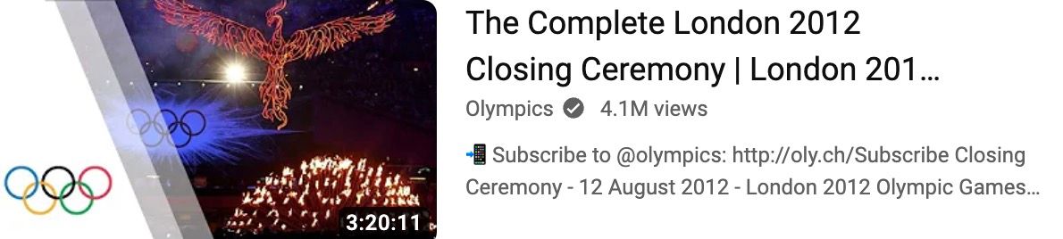 We have discussed the ritual of 2012 London Olympic Opening ceremony before (not to mention 2022 Commonwealth Games) - I must admit that I had not looked at the 2012 Olympic Closing Ceremony. Had you? WDYT? Let me know!