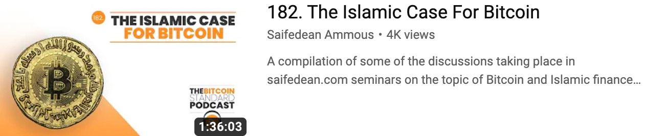 In this interview you will learn that whilst Islamic Finance claims to be Halal the reality is that the "scholars" have deluded themselves and all around them into taking the drug that is Fiat money with all the fractional reserve and associated usury resulting in a system today that is Haram. Soon the realisation will dawn on people that Bitcoin is perfectly Halal and that it allows to eliminate the excuses for Riba by providing a fully viable alternative system - interestingly some scholars already see this.