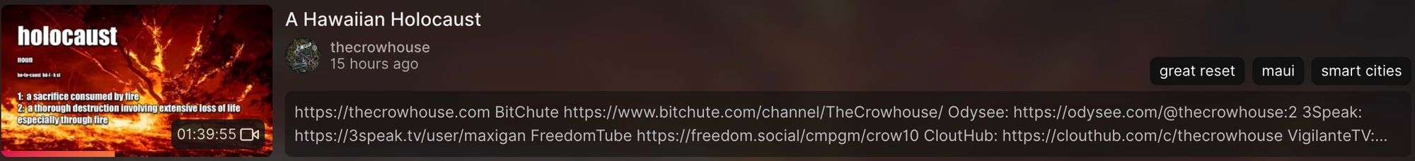 In case you were in any doubt about what really happened in Lahaina, Maui: Max explains. Keep in mind that nothing you see in mainstream media about Climate Change is honest - the reality is that many (more than you think) of the tragic events that you see are really false flags created by the government/military to instil fear and compliance in the population as well as to take the opportunity to lock in gains like their flagship 15 minute city rebuild project. Think back to Paradise California and what happened 11 Sep 2001 - you have seen this technology in action before being used against the population.