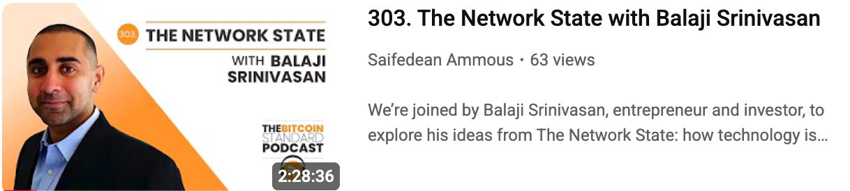 Here is a summary of the conversation between Saifedean Ammous and Balaji Srinivasan, exploring the intersection of the Bitcoin Standard and the Network State.
