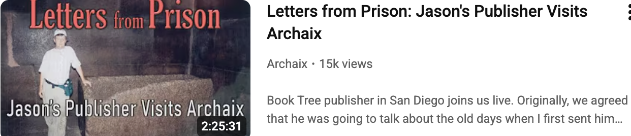 He describes a unique advantage he had: Texas prisons often received book donations from defunct libraries dating back to the early 20th century. This gave Jason access to obscure, pre-censorship historical texts and encyclopedias that modern researchers rarely see. He emulated Pliny the Elder by taking obsessive notes, which his father archived in an attic for over two decades. This archive became the foundation of the Archaix channel.