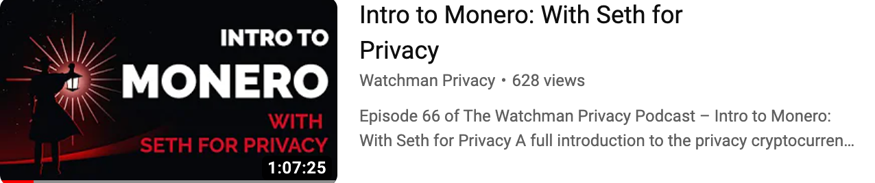 First up is this excellent discussion on Monero with Seth. Listen carefully to the explanation to understand how Monero (XMR) provides privacy by using three mechanisms that are fundamental and built into the protocol and network.