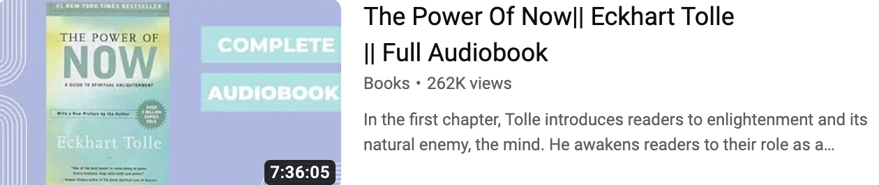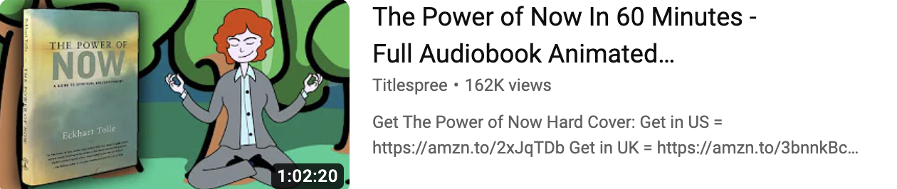 Last week we closed on Eckhard Tolle's Power of Now. Some of you were rightly interested or intrigued by this so I'm happy to recommend that you listen to Eckhard himself read his book. He does this in the style of seminars in which he takes questions and gives answers. This is absolutely fascinating and you will get so many insights. For this to be useful, you must set aside time to listen without disturbance or distraction - you can certainly do this in multiple sittings but each one should allow focus.