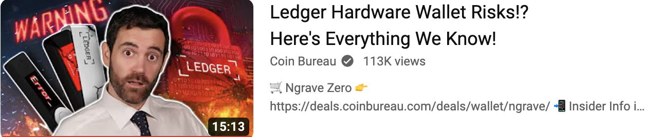 You may have heard this week also about Ledger, the French manufacturer of Hardware Security Devices for signing bitcoin transactions. They too broke trust and pushed out an update that captures their customers into KYC-hell and renders their secret keys vulnerable - abusing trust and shattering any credibility that they could have had. Such behaviour cannot be excused. Guy explains here and, like everyone I know, he too will no longer recommend their product; there are much better alternatives.