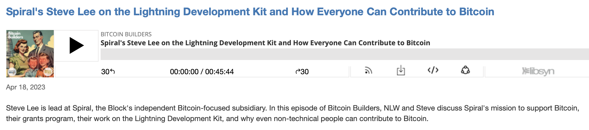 Once you understand this, the next step that many will take is to start building. Â Listen here as Spiral's Steve Lee explains the Lightning Development Kit and How Everyone Can Contribute to Bitcoin