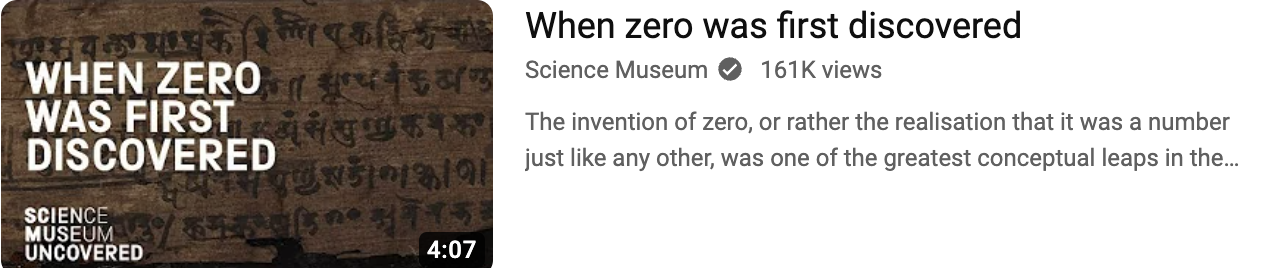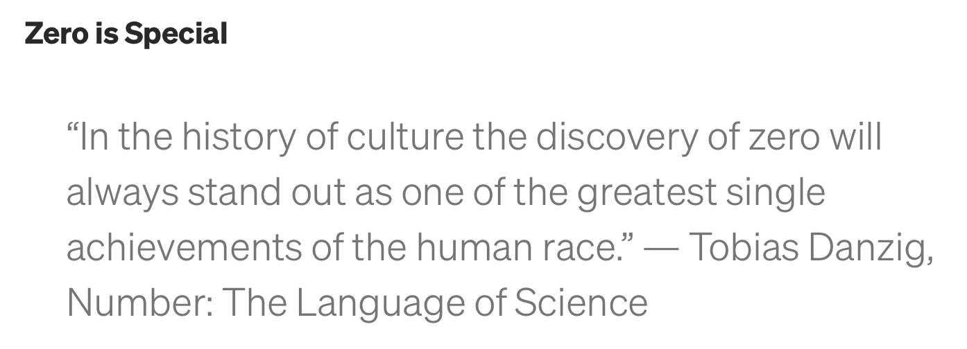 As additional background you might like to check out this video from quite a few years ago on how Zero was discovered. Â Independently confirming Robert's explanation and providing some additional insights too.