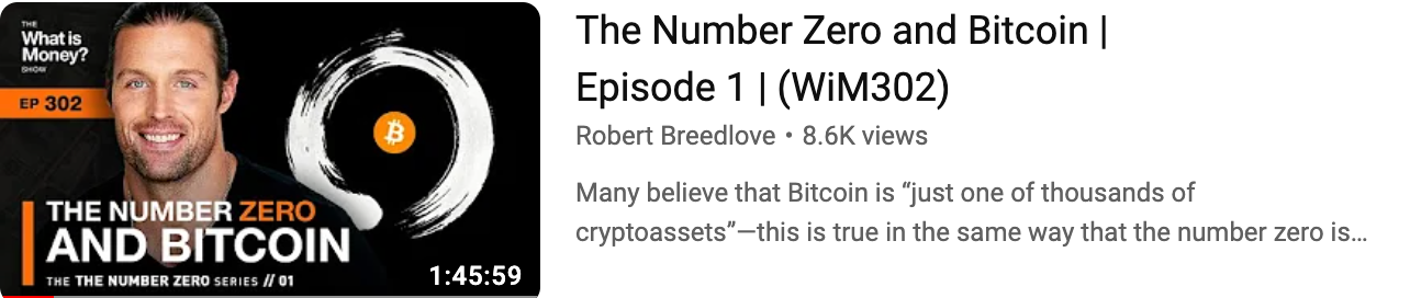 Many believe that Bitcoin is “just one of thousands of cryptoassets”—this is true in the same way that the number zero is just one of an infinite series of numbers. In reality, Bitcoin is special, and so is zero: each is an invention which led to a discovery that fundamentally reshaped its overarching system—for Bitcoin, that system is money, and for zero, it is mathematics. Since money and math are mankind’s two universal languages, both Bitcoin and zero are critical constructs for civilisation.  Consider this read-through by Robert: