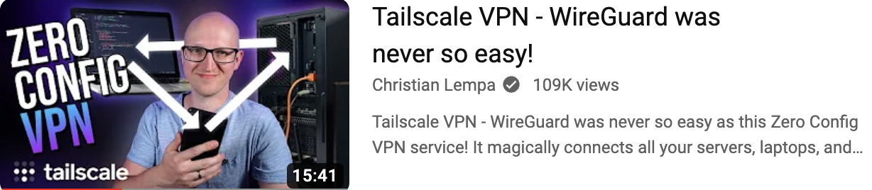 One thing that I am already impressed by is using Tailscale to access remote devices securely. Â This greatly reduces the need to expose open ports and possible firewall misconfiguration. Â This can also be useful for those of you who need to do remote support on family PCs - or if, for example, you wanted to have a backup disk stored in a remote location (rsync is your friend). Â Christian explains: