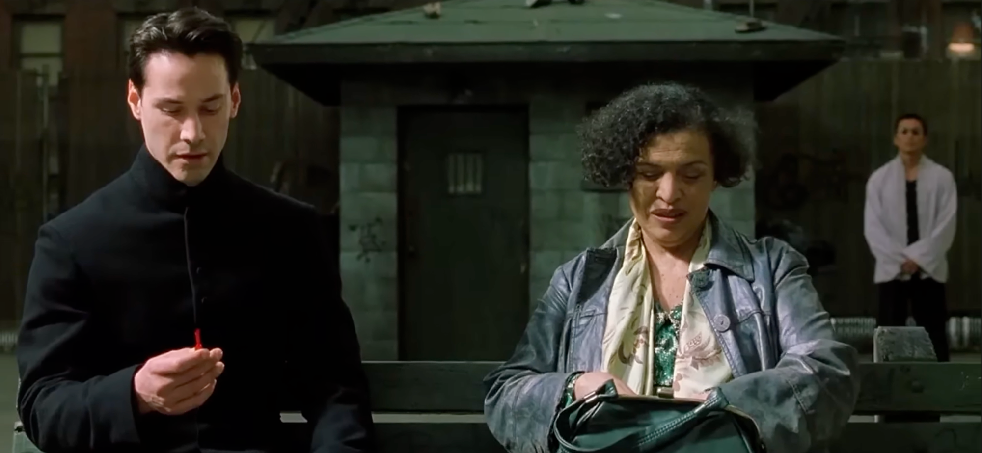 - Blue pill: continue comforting illusion, consent to ignorance.