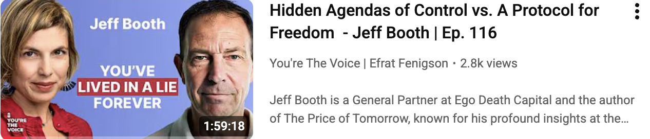 Booth's ultimate message: move your time and energy into the new system. Stop yelling at the old one. Build value for others on honest protocols. The transition won't be clean—censorship, debanking, and control will intensify as the old system becomes desperate.