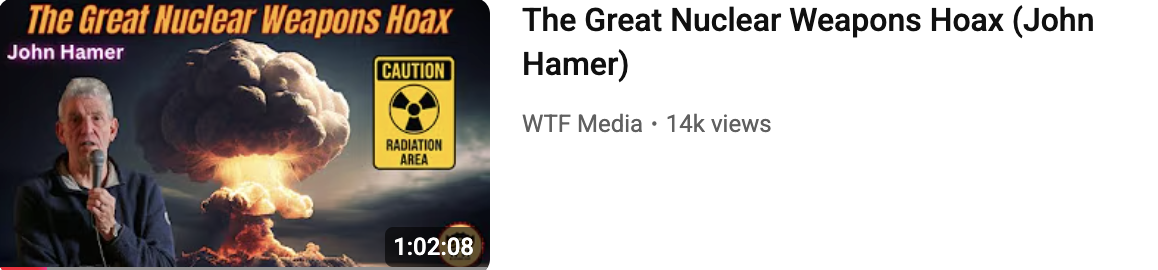 John Hamer presents his theory arguing that nuclear weapons do not exist and were fabricated as a psychological tool for population control. The talk begins with establishing a framework of historical falsification, citing quotes from the musical Wicked, Henry Ford, Voltaire, and his own book The Falsification of History to suggest that mainstream historical and scientific narratives are deliberately deceptive.